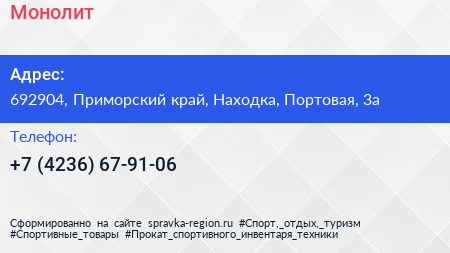 Монолит по адресу 692904, Приморский край, Находка, Портовая, 3а в дальнейшем Организация, размещена в следующих категориях: