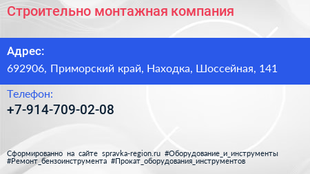 Строительно-монтажная компания по адресу 692906, Приморский край, Находка, Шоссейная, 141 в дальнейшем Организация, размещена в следующих категориях: