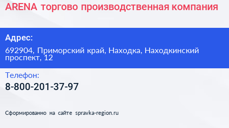 ARENA, торгово-производственная компания по адресу 692904, Приморский край, Находка, Находкинский проспект, 12 в дальнейшем Организация, размещена в следующих категориях: