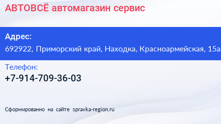 АВТОВСЁ, автомагазин-сервис по адресу 692922, Приморский край, Находка, Красноармейская, 15а в дальнейшем Организация, размещена в следующих категориях: