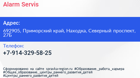 Alarm Servis по адресу 692905, Приморский край, Находка, Северный проспект, 27Б в дальнейшем Организация, размещена в следующих категориях: