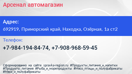 Арсенал, автомагазин по адресу 692919, Приморский край, Находка, Озёрная, 1а ст2 в дальнейшем Организация, размещена в следующих категориях: