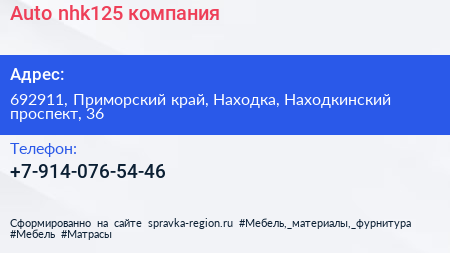 Auto nhk125, компания по адресу 692911, Приморский край, Находка, Находкинский проспект, 36 в дальнейшем Организация, размещена в следующих категориях: