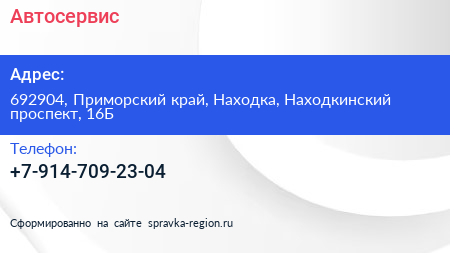 Автосервис по адресу 692904, Приморский край, Находка, Находкинский проспект, 16Б в дальнейшем Организация, размещена в следующих категориях: