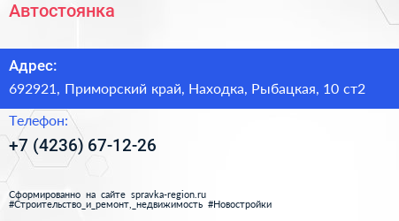 Автостоянка по адресу 692921, Приморский край, Находка, Рыбацкая, 10 ст2 в дальнейшем Организация, размещена в следующих категориях: