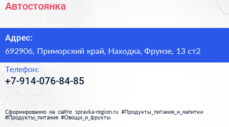 Автостоянка по адресу 692906, Приморский край, Находка, Фрунзе, 13 ст2 в дальнейшем Организация, размещена в следующих категориях: