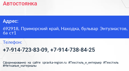Автостоянка по адресу 692918, Приморский край, Находка, бульвар Энтузиастов, 6а ст1 в дальнейшем Организация, размещена в следующих категориях: