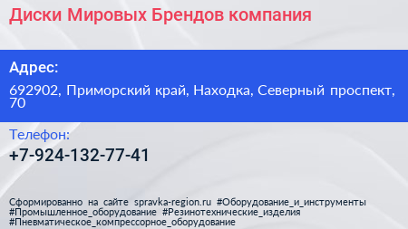 Диски Мировых Брендов, компания по адресу 692902, Приморский край, Находка, Северный проспект, 70 в дальнейшем Организация, размещена в следующих категориях: