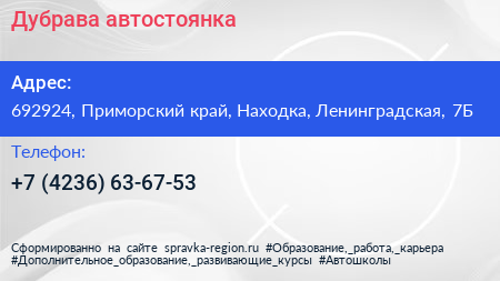 Дубрава, автостоянка по адресу 692924, Приморский край, Находка, Ленинградская, 7Б в дальнейшем Организация, размещена в следующих категориях: