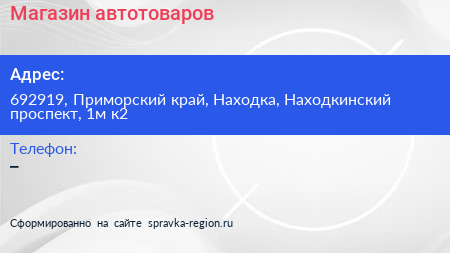 Магазин автотоваров по адресу 692919, Приморский край, Находка, Находкинский проспект, 1м к2 в дальнейшем Организация, размещена в следующих категориях:
