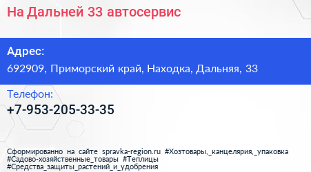 На Дальней 33, автосервис по адресу 692909, Приморский край, Находка, Дальняя, 33 в дальнейшем Организация, размещена в следующих категориях: