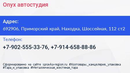 Onyx, автостудия по адресу 692906, Приморский край, Находка, Шоссейная, 112 ст2 в дальнейшем Организация, размещена в следующих категориях: