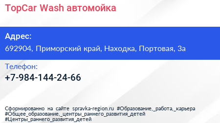 TopCar Wash, автомойка по адресу 692904, Приморский край, Находка, Портовая, 3а в дальнейшем Организация, размещена в следующих категориях:
