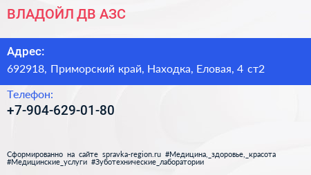 ВЛАДОЙЛ ДВ, АЗС по адресу 692918, Приморский край, Находка, Еловая, 4 ст2 в дальнейшем Организация, размещена в следующих категориях: