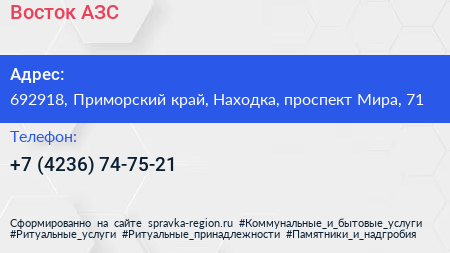Восток, АЗС по адресу 692918, Приморский край, Находка, проспект Мира, 71 в дальнейшем Организация, размещена в следующих категориях: