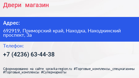 Двери+, магазин по адресу 692919, Приморский край, Находка, Находкинский проспект, 3а в дальнейшем Организация, размещена в следующих категориях: