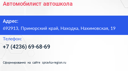Автомобилист, автошкола по адресу 692913, Приморский край, Находка, Нахимовская, 19 в дальнейшем Организация, размещена в следующих категориях: