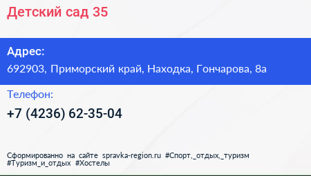 Детский сад №35 по адресу 692903, Приморский край, Находка, Гончарова, 8а в дальнейшем Организация, размещена в следующих категориях: