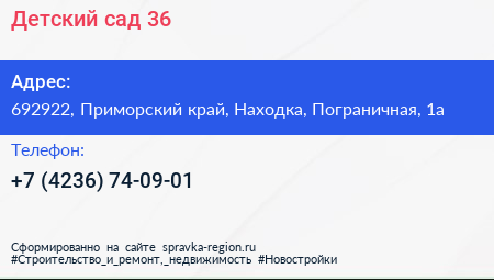 Детский сад №36 по адресу 692922, Приморский край, Находка, Пограничная, 1а в дальнейшем Организация, размещена в следующих категориях: