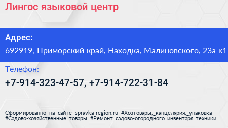 Лингос, языковой центр по адресу 692919, Приморский край, Находка, Малиновского, 23а к1 в дальнейшем Организация, размещена в следующих категориях: