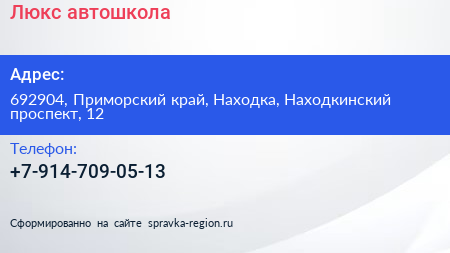 Люкс, автошкола по адресу 692904, Приморский край, Находка, Находкинский проспект, 12 в дальнейшем Организация, размещена в следующих категориях: