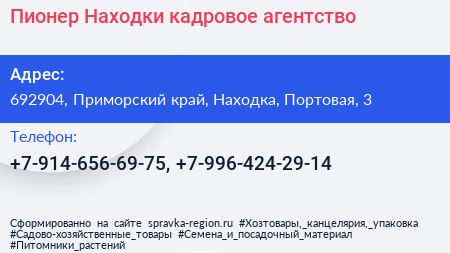 Пионер Находки, кадровое агентство по адресу 692904, Приморский край, Находка, Портовая, 3 в дальнейшем Организация, размещена в следующих категориях: