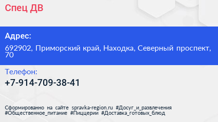Спец ДВ по адресу 692902, Приморский край, Находка, Северный проспект, 70 в дальнейшем Организация, размещена в следующих категориях: