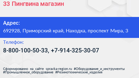 33 Пингвина, магазин по адресу 692928, Приморский край, Находка, проспект Мира, 3 в дальнейшем Организация, размещена в следующих категориях: