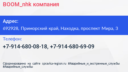 BOOM_nhk, компания по адресу 692928, Приморский край, Находка, проспект Мира, 3 в дальнейшем Организация, размещена в следующих категориях:
