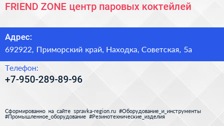 FRIEND ZONE, центр паровых коктейлей по адресу 692922, Приморский край, Находка, Советская, 5а в дальнейшем Организация, размещена в следующих категориях: