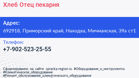 Хлеб-Отец, пекарня по адресу 692918, Приморский край, Находка, Мичманская, 39а ст1 в дальнейшем Организация, размещена в следующих категориях: