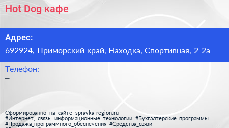 Hot-Dog, кафе по адресу 692924, Приморский край, Находка, Спортивная, 2-2а в дальнейшем Организация, размещена в следующих категориях: