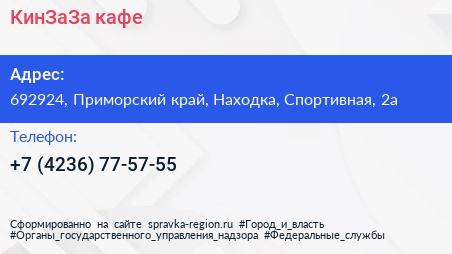 КинЗаЗа, кафе по адресу 692924, Приморский край, Находка, Спортивная, 2а в дальнейшем Организация, размещена в следующих категориях: