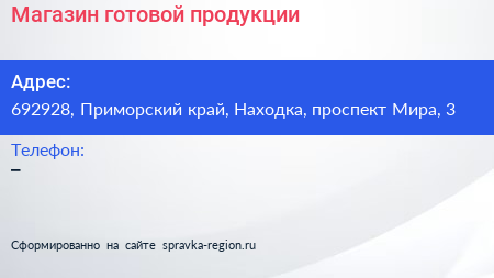 Магазин готовой продукции по адресу 692928, Приморский край, Находка, проспект Мира, 3 в дальнейшем Организация, размещена в следующих категориях: