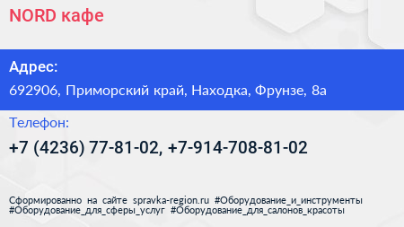 NORD, кафе по адресу 692906, Приморский край, Находка, Фрунзе, 8а в дальнейшем Организация, размещена в следующих категориях:
