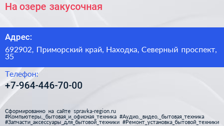 На озере, закусочная по адресу 692902, Приморский край, Находка, Северный проспект, 35 в дальнейшем Организация, размещена в следующих категориях: