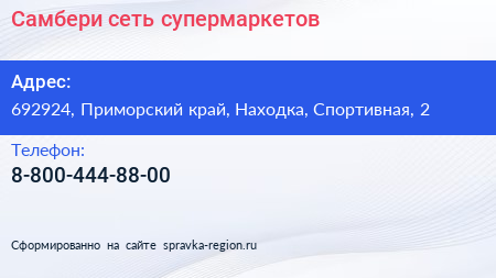 Самбери, сеть супермаркетов по адресу 692924, Приморский край, Находка, Спортивная, 2 в дальнейшем Организация, размещена в следующих категориях: