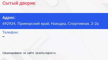 Сытый дворик по адресу 692924, Приморский край, Находка, Спортивная, 2-2а в дальнейшем Организация, размещена в следующих категориях: