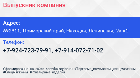 Выпускник, компания по адресу 692911, Приморский край, Находка, Ленинская, 2а к1 в дальнейшем Организация, размещена в следующих категориях:
