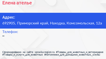 Елена, ателье по адресу 692905, Приморский край, Находка, Комсомольская, 12а в дальнейшем Организация, размещена в следующих категориях: