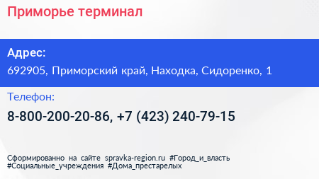 Приморье, терминал по адресу 692905, Приморский край, Находка, Сидоренко, 1 в дальнейшем Организация, размещена в следующих категориях: