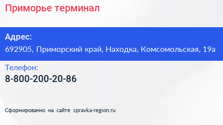 Приморье, терминал по адресу 692905, Приморский край, Находка, Комсомольская, 19а в дальнейшем Организация, размещена в следующих категориях: