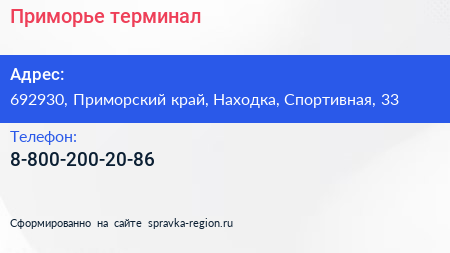 Приморье, терминал по адресу 692930, Приморский край, Находка, Спортивная, 33 в дальнейшем Организация, размещена в следующих категориях: