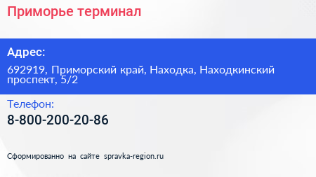 Приморье, терминал по адресу 692919, Приморский край, Находка, Находкинский проспект, 5/2 в дальнейшем Организация, размещена в следующих категориях: