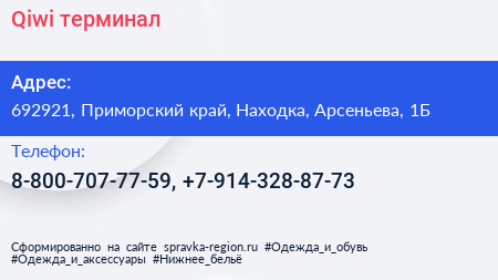 Qiwi, терминал по адресу 692921, Приморский край, Находка, Арсеньева, 1Б в дальнейшем Организация, размещена в следующих категориях: