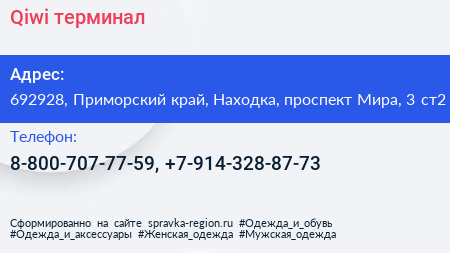 Qiwi, терминал по адресу 692928, Приморский край, Находка, проспект Мира, 3 ст2 в дальнейшем Организация, размещена в следующих категориях:
