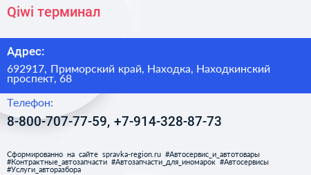 Qiwi, терминал по адресу 692917, Приморский край, Находка, Находкинский проспект, 68 в дальнейшем Организация, размещена в следующих категориях: