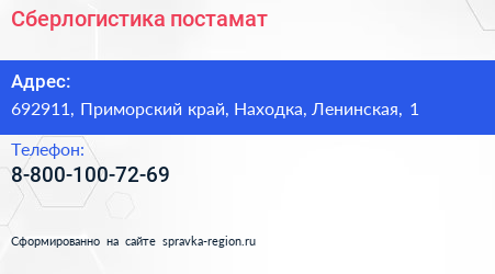 Сберлогистика, постамат по адресу 692911, Приморский край, Находка, Ленинская, 1 в дальнейшем Организация, размещена в следующих категориях:
