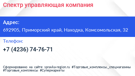 Спектр, управляющая компания по адресу 692905, Приморский край, Находка, Комсомольская, 32 в дальнейшем Организация, размещена в следующих категориях: