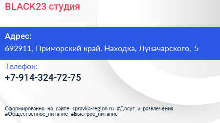 #BLACK23, студия по адресу 692911, Приморский край, Находка, Луначарского, 5 в дальнейшем Организация, размещена в следующих категориях: